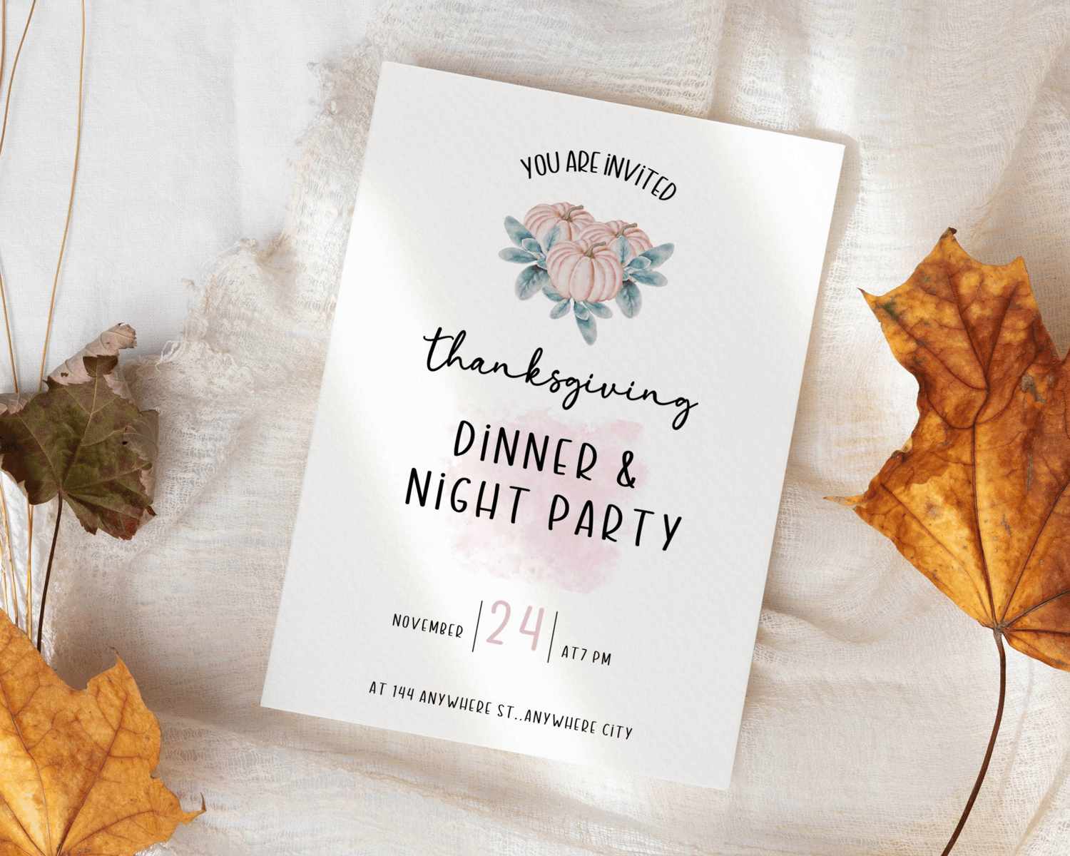 This minimalist Thanksgiving invitation template for the fall season provides you with the flexibility to personalize the text, font, font color, and background color, enabling you to create a design that perfectly complements your unique celebration.