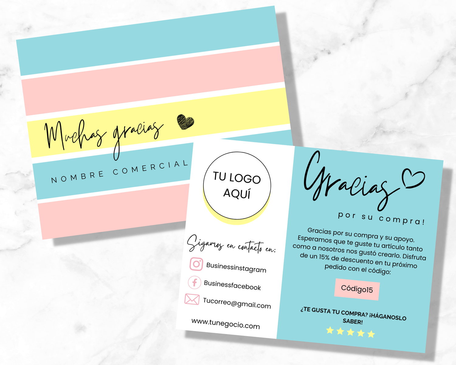 Tarjeta de agradecimiento para pedidos online pequeños negocios