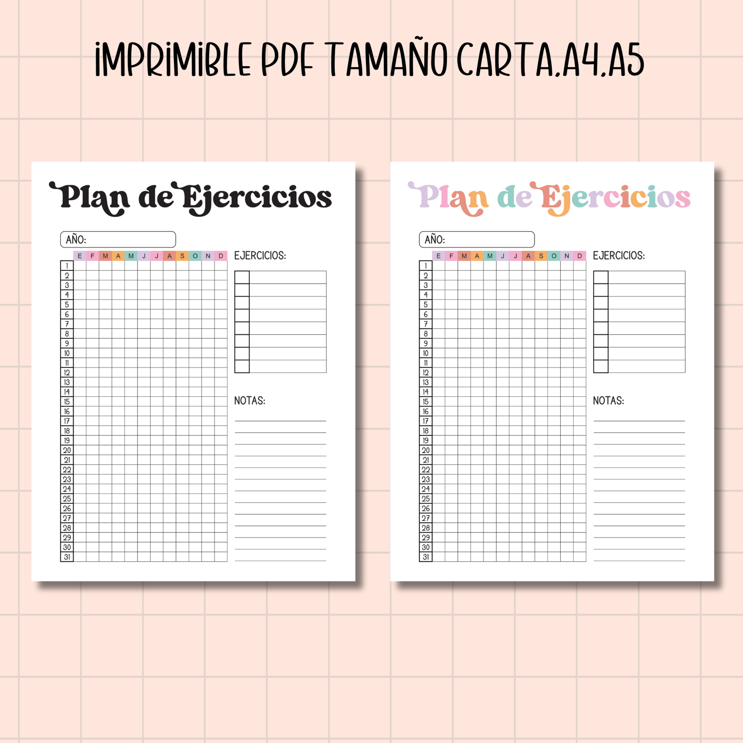 - 1 PDF tamaño A4 (8.27" X 11.69") para imprimir