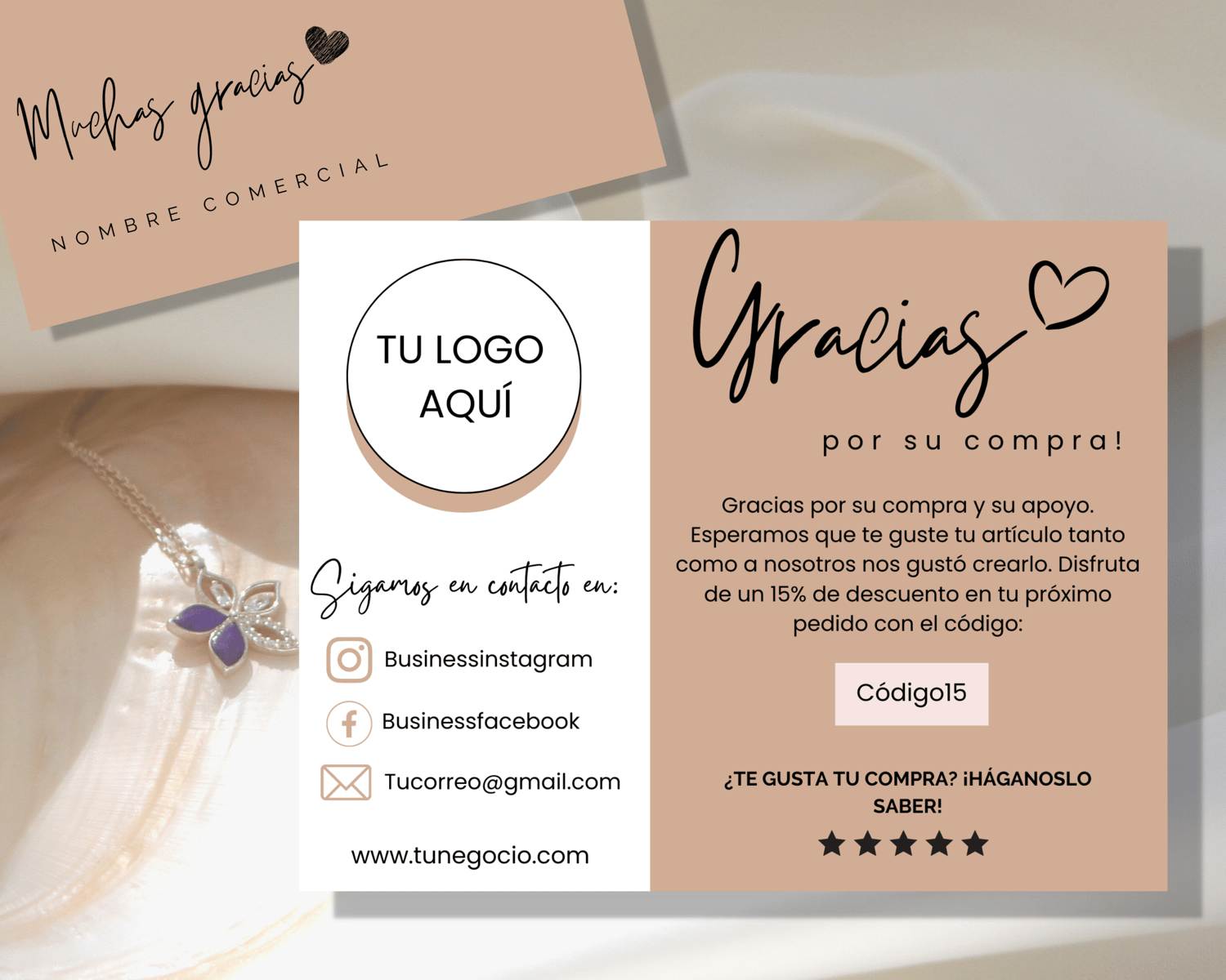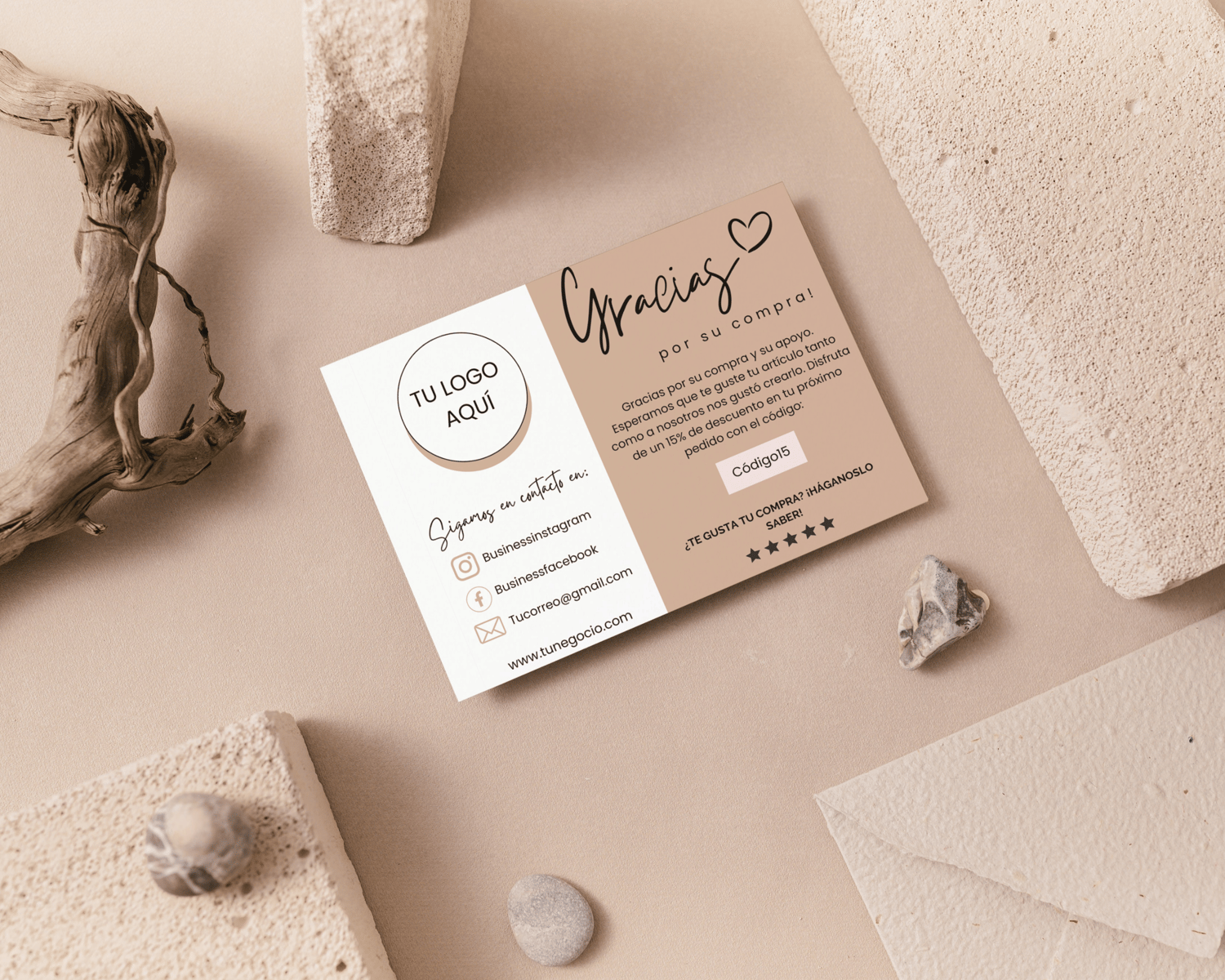 Tarjeta de agradecimiento para pedidos online pequeños negocios