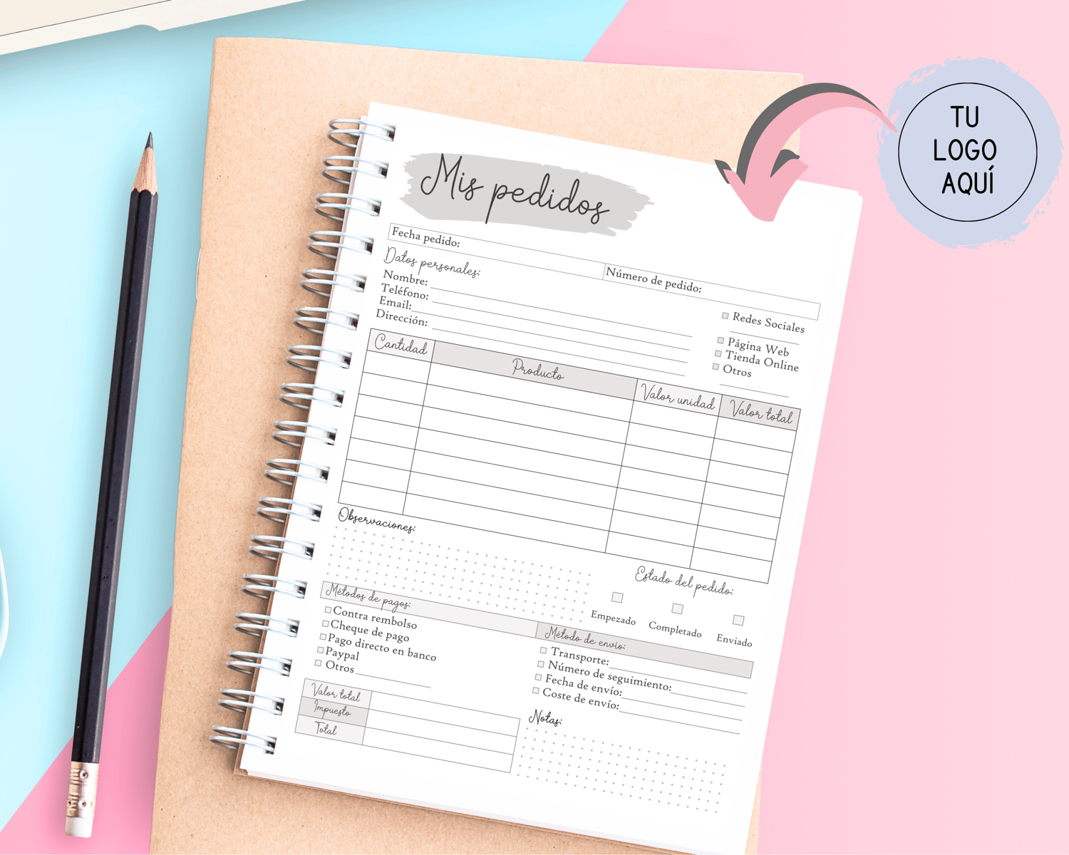 Hoja de pedidos imprimible para pequeños negocios