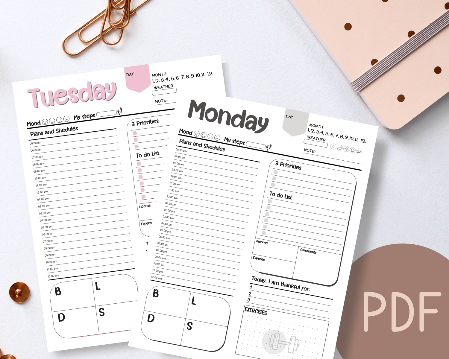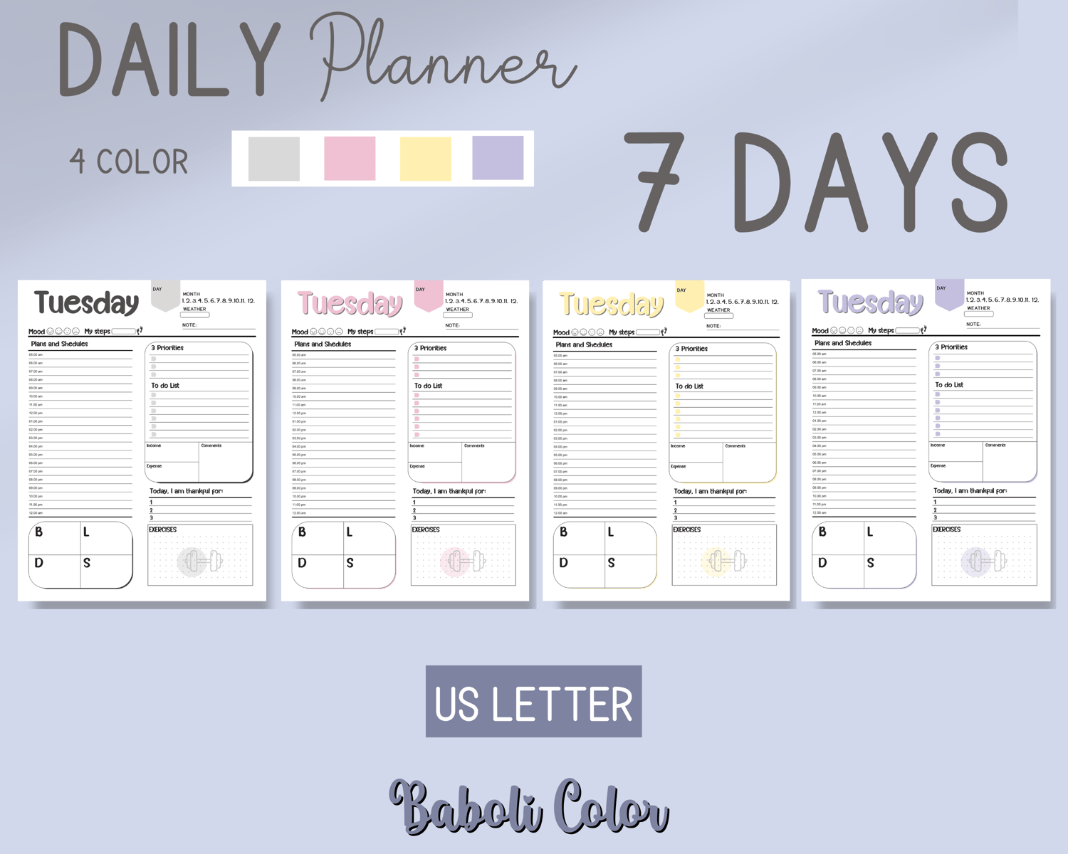 Printable daily planner, Daily routine 7 days
