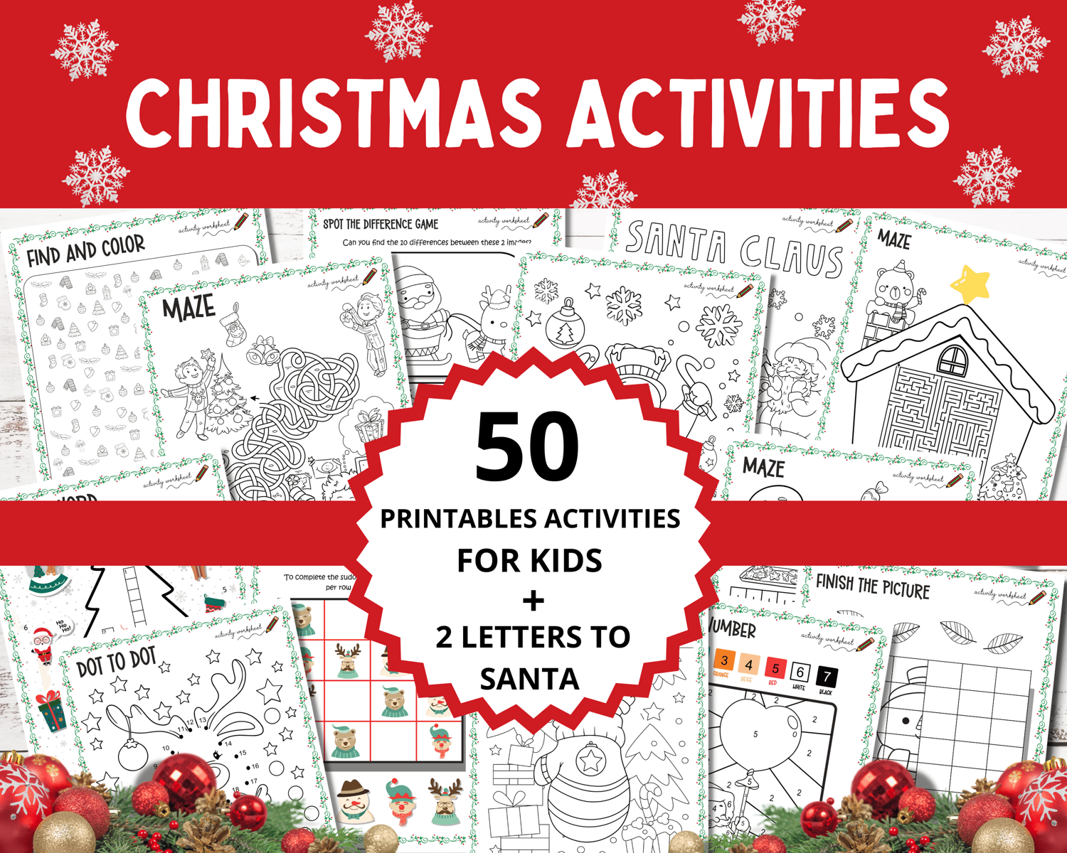 50 Printables Christmas Activities to print for kids, fun coloring pages, and Christmas Party Games, Bonus Two Letters to Santa