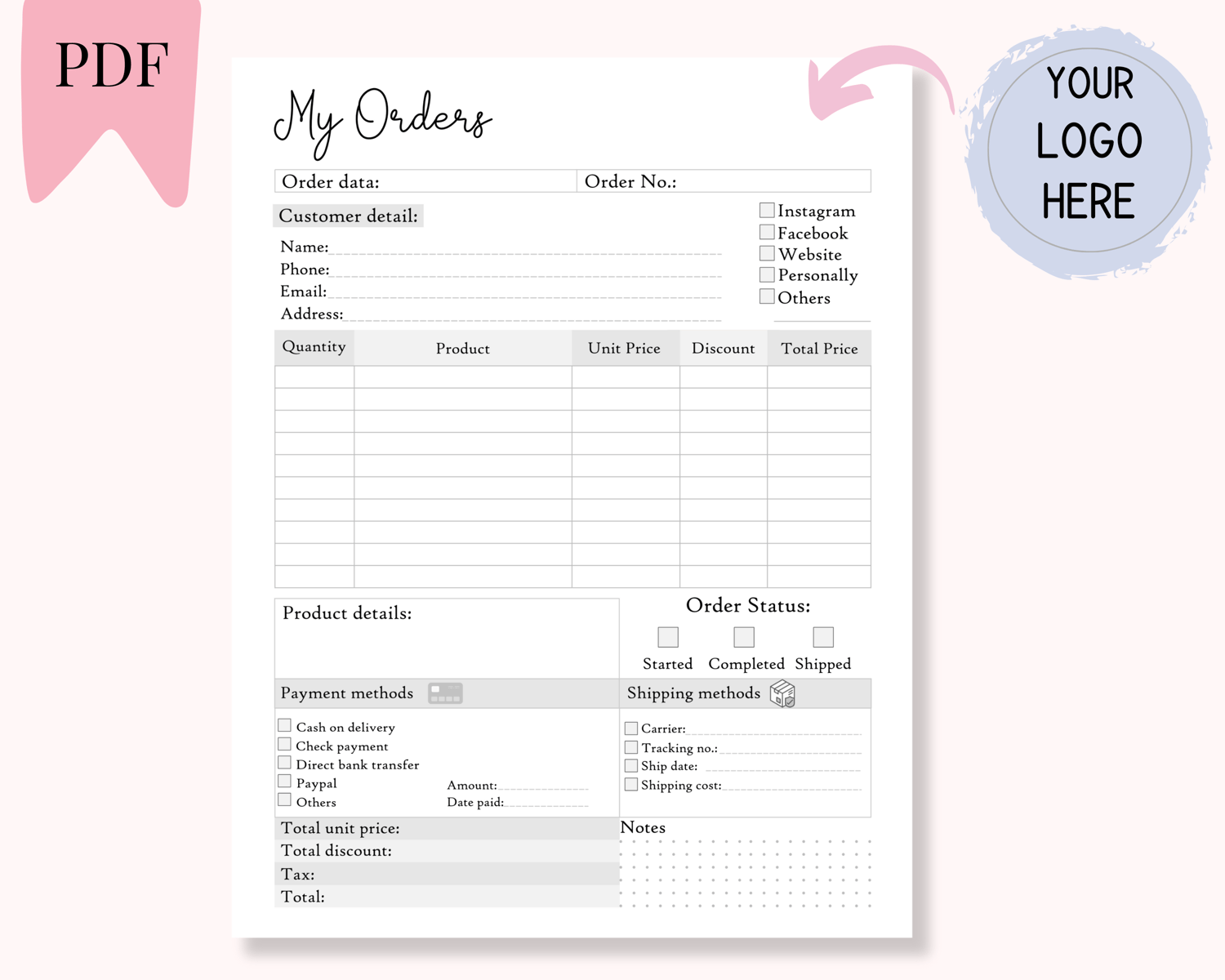 Printable Order Book for Small Businesses, Order Log for Online and Retail Store