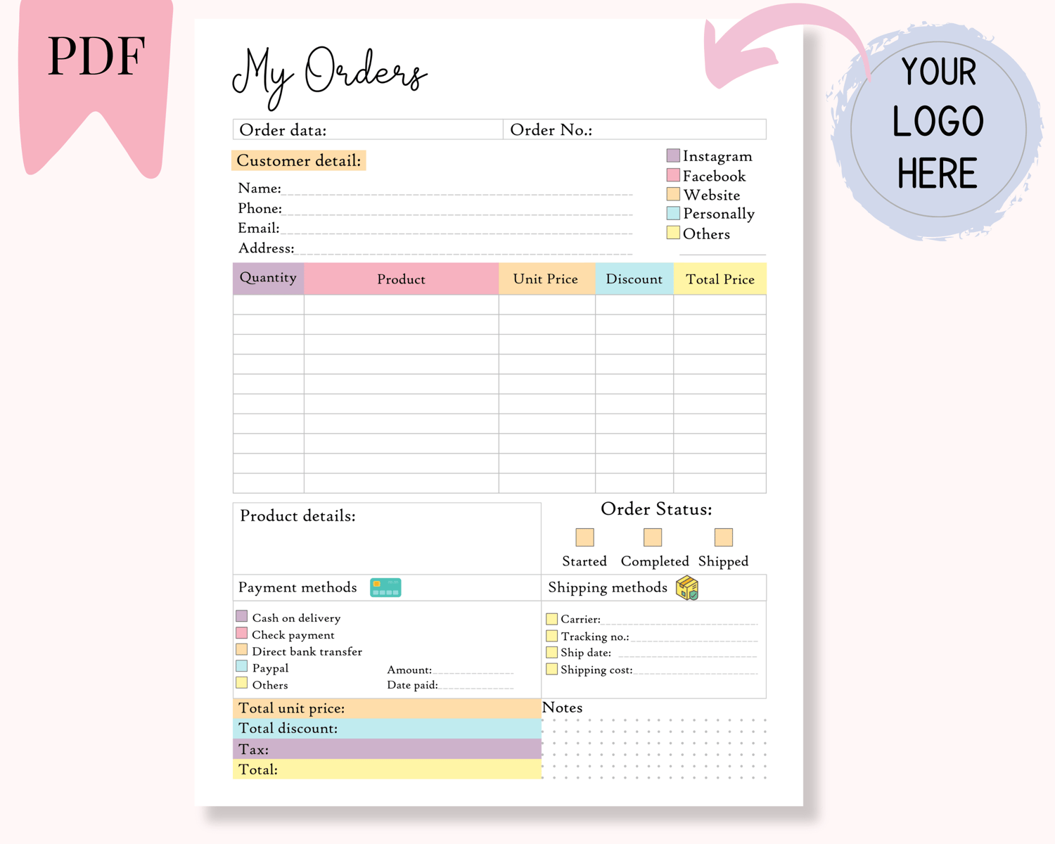 This order form will help you track the management process from when