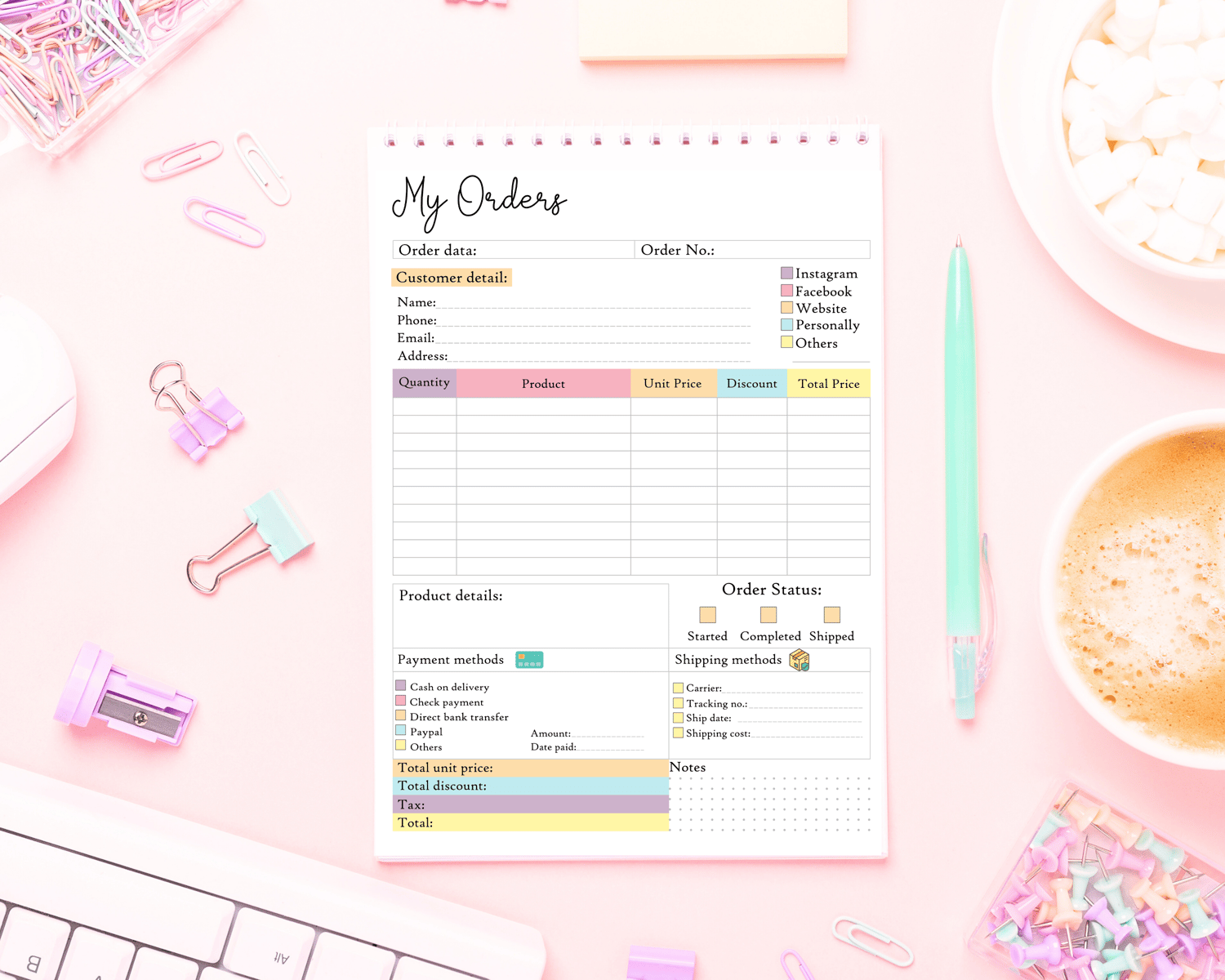A beautiful sales order book keeps track of your customer orders.