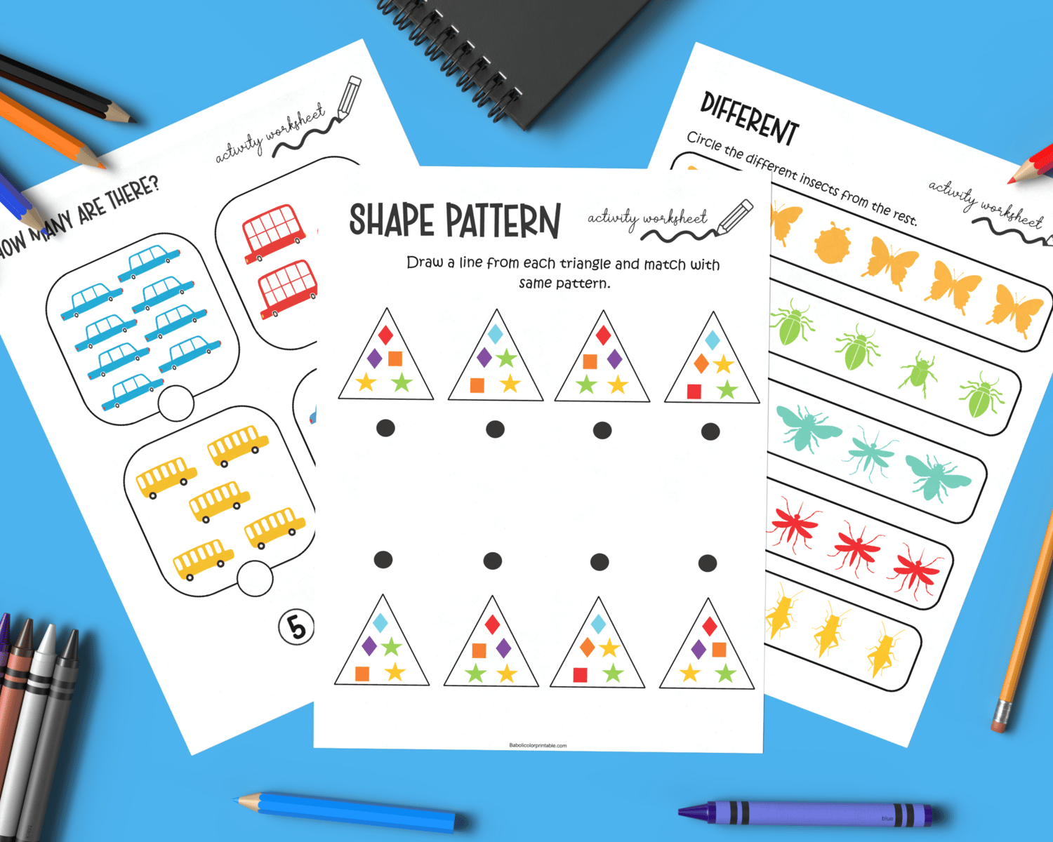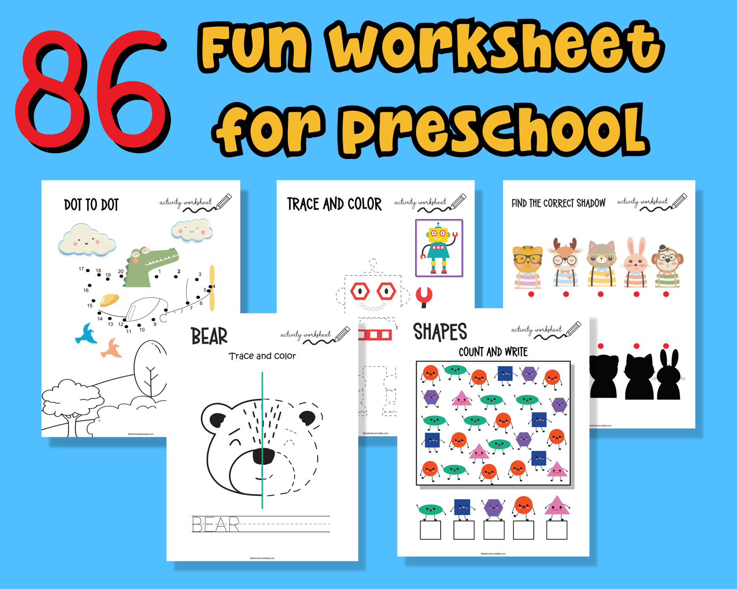 Fun & Educational Preschool Worksheet Colors, Shapes, Numbers, Early Math, Alphabet, mazes