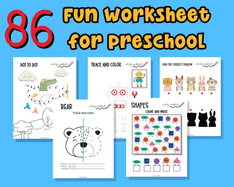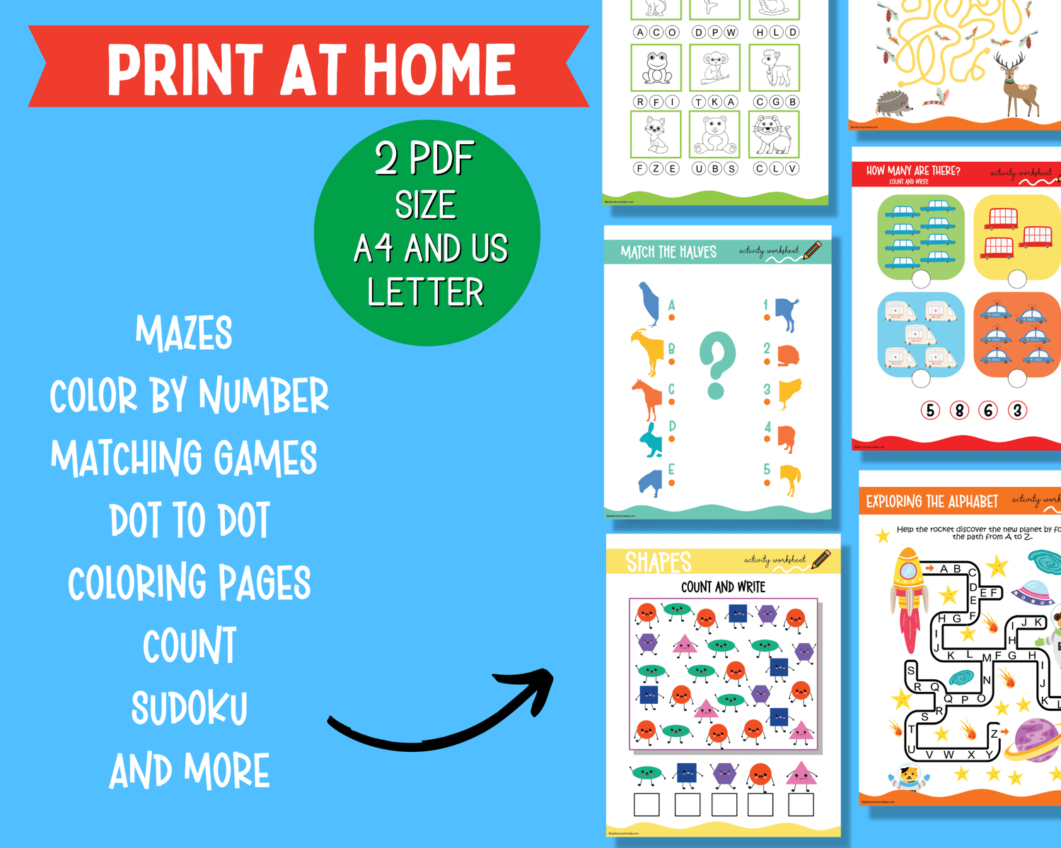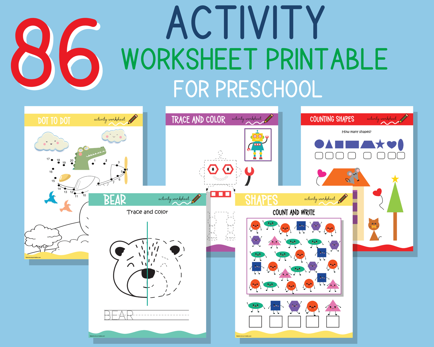 86 Activity Worksheets to print for kids in Preschool, kindergarten fun educational activities in color Instant PDF Download Letter & A4
