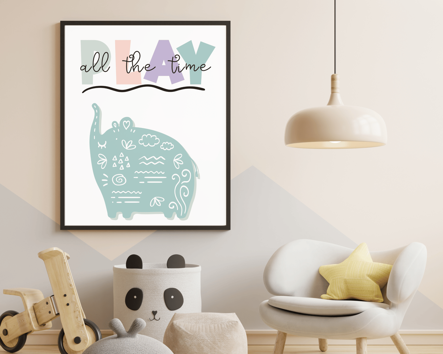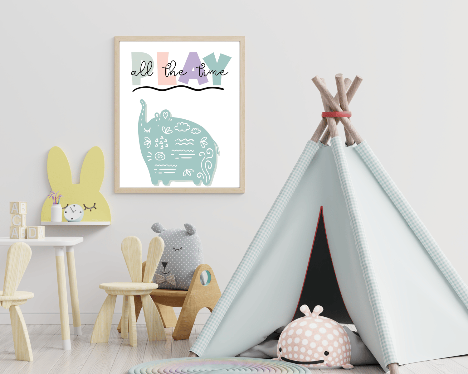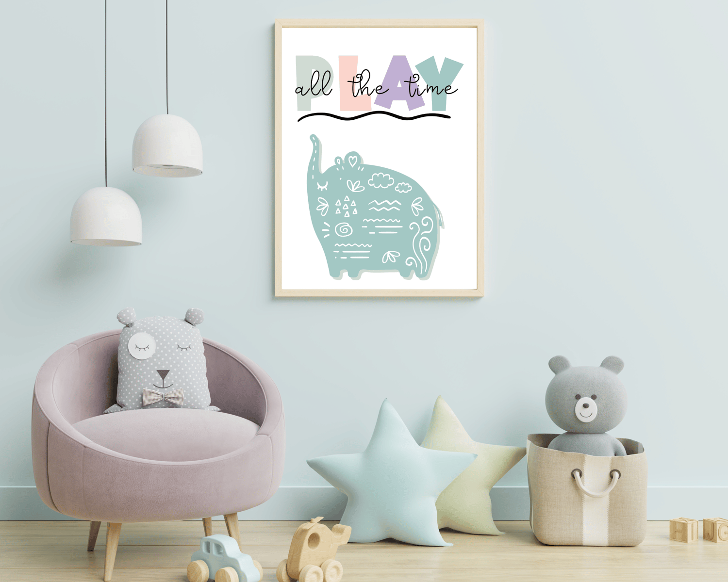 Play all the time Art Print, Kids Wall Decor Modern Nursery Poster Art, Playroom Wall Art Digital Download