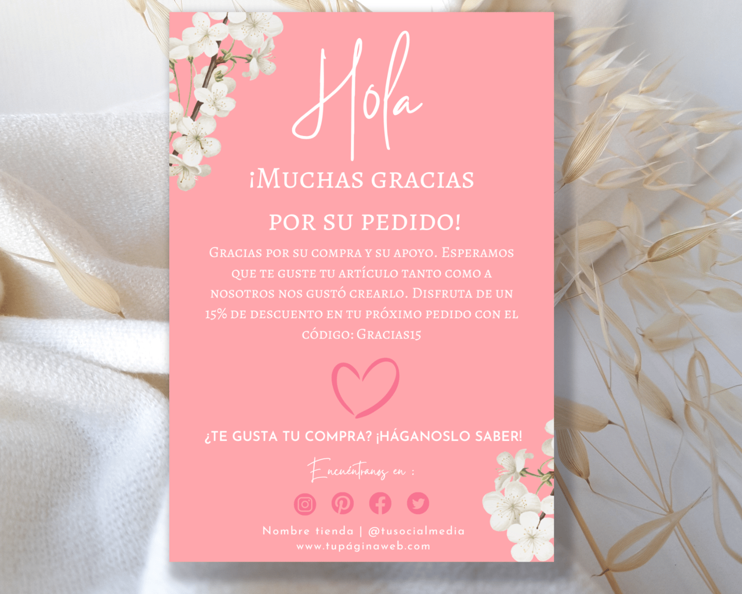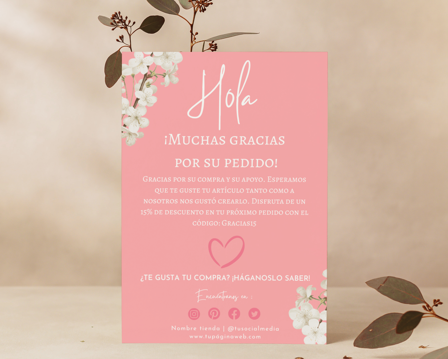 Tarjeta de agradecimiento para pedidos online pequeños negocios