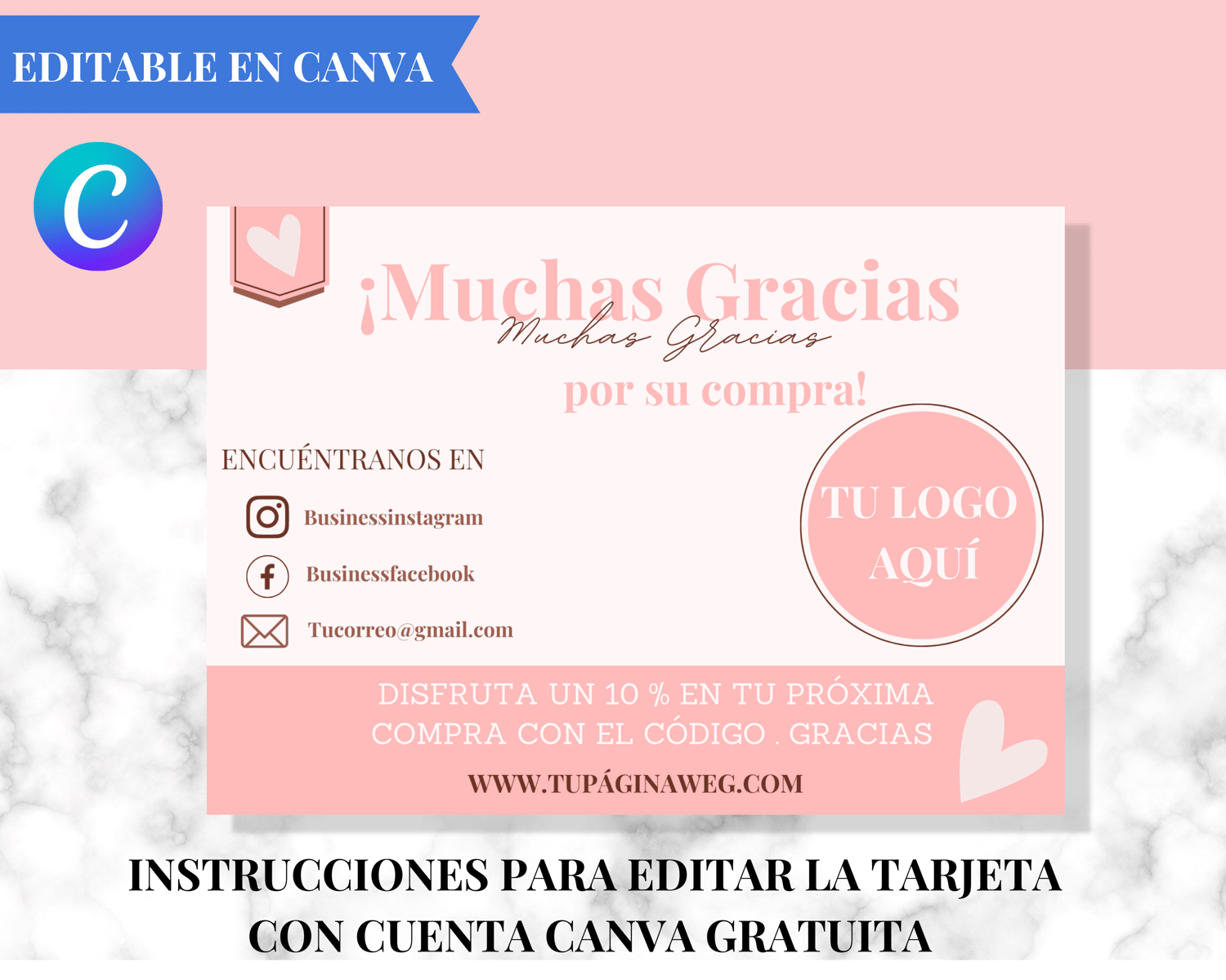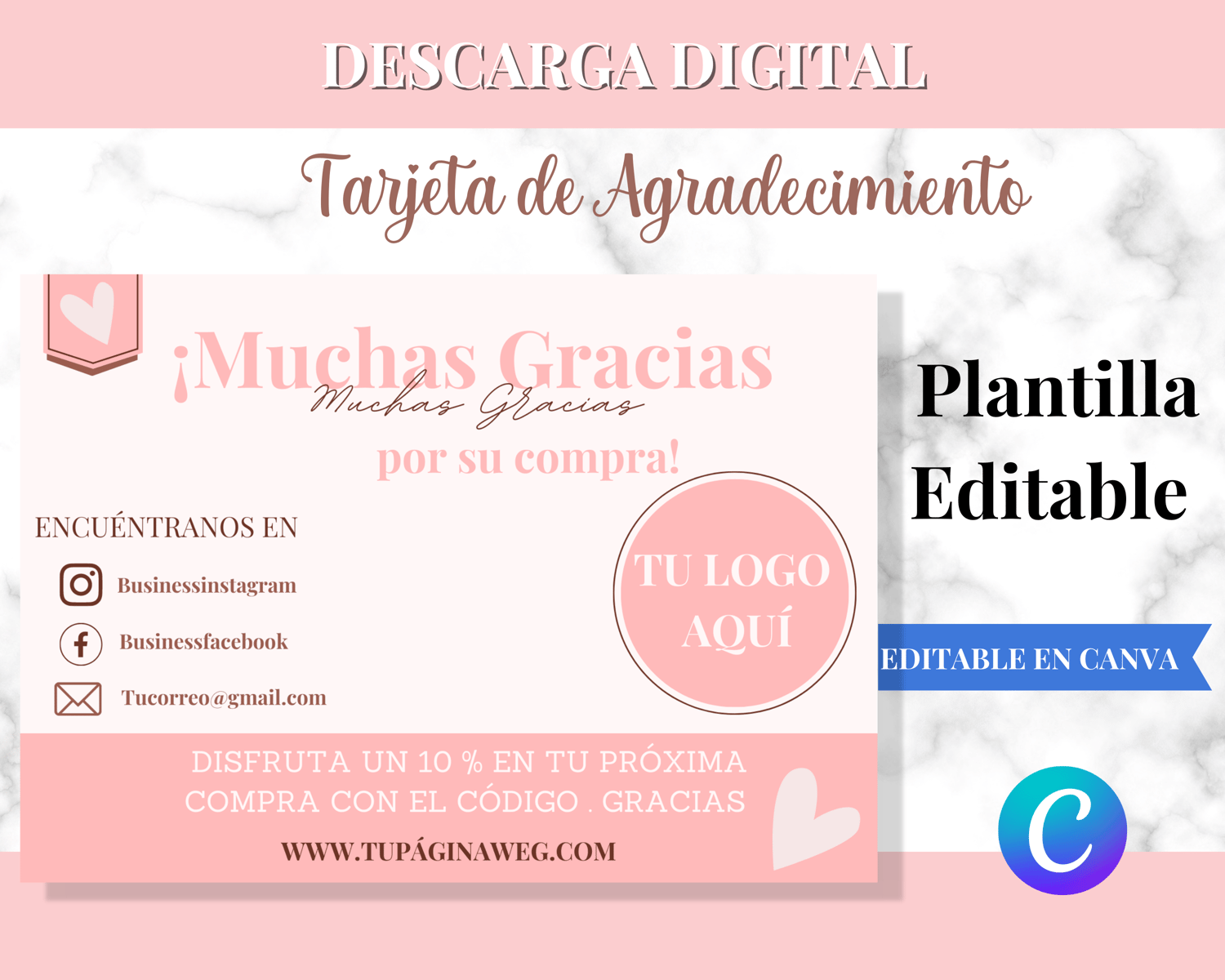 Esta tarjeta de agradecimiento editable es una herramienta valiosa para cualquier pequeño negocio que quiera mostrar su aprecio a sus clientes. Con un diseño moderno y personalizable, puedes crear un mensaje de agradecimiento que sea único y refleje la identidad de tu empresa. Además, es totalmente editable, puede añadir su propio texto, elegir su propia combinación de colores, cambiar las fuentes, editar los colores de los iconos, añadir su logotipo, etc. Solo necesitas una cuenta gratuita de Canva.