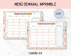 Menu semanal imprimible,planificador de comidas