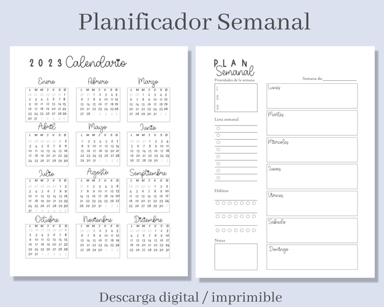 Nuestra tienda de planificadores imprimibles ofrece una amplia variedad de plantillas que te ayudarán a mantenerte organizado. Nuestros planificadores están diseñados para adaptarse a cualquier calendario, desde diseños diarios, semanales y mensuales hasta hojas de trabajo para fijar objetivos y marcadores de hábitos. Todas las plantillas se pueden descargar al instante e imprimir fácilmente en casa o en una imprenta local. Comience a planificar sus días con facilidad y alcance sus objetivos con nuestras plantillas imprimibles.